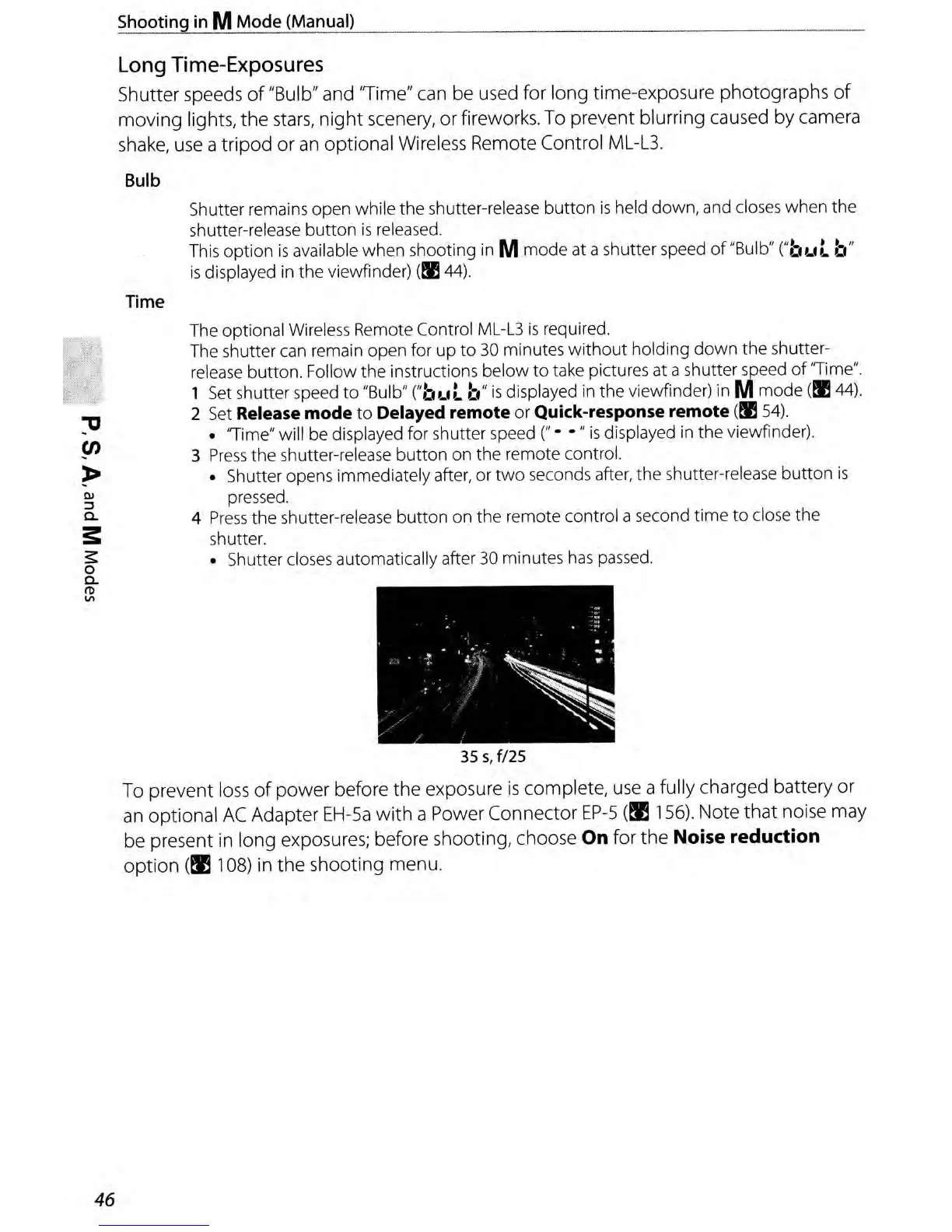 "Bulb" and "Time" can be used for long time-exposure photographs