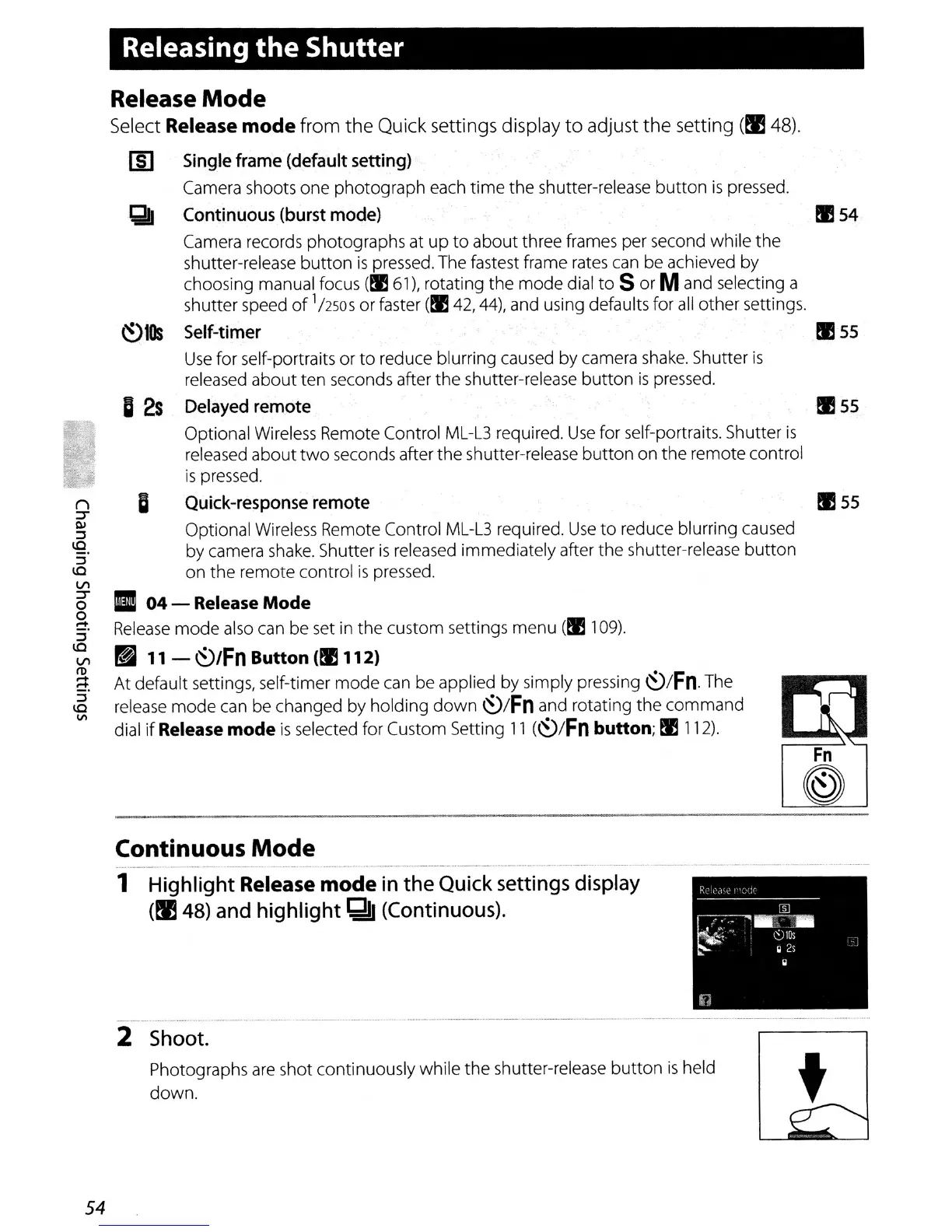 Optional Wireless Remote Control ML-L3 required.