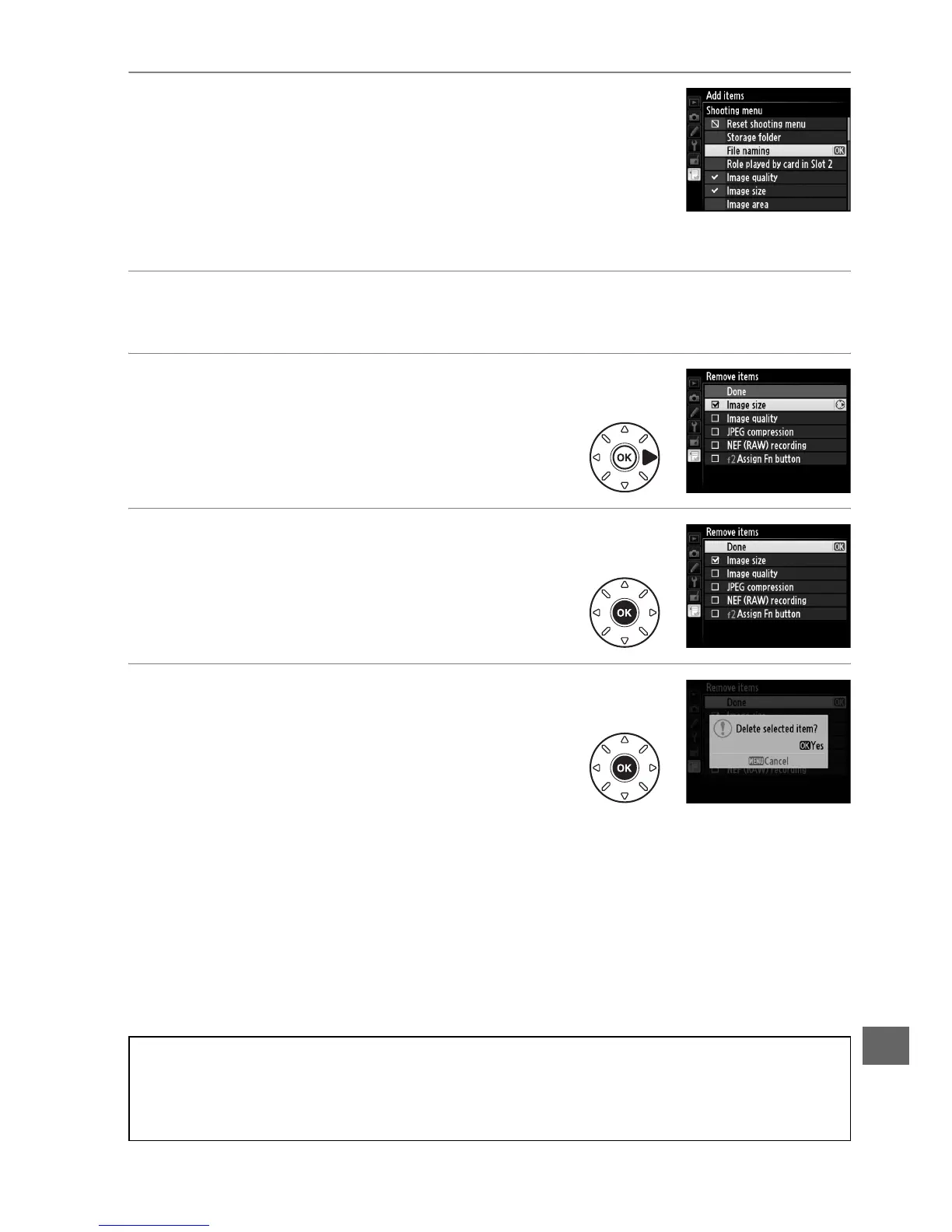 To delete the item currently highlighted in My Menu, press the O (Q) button.