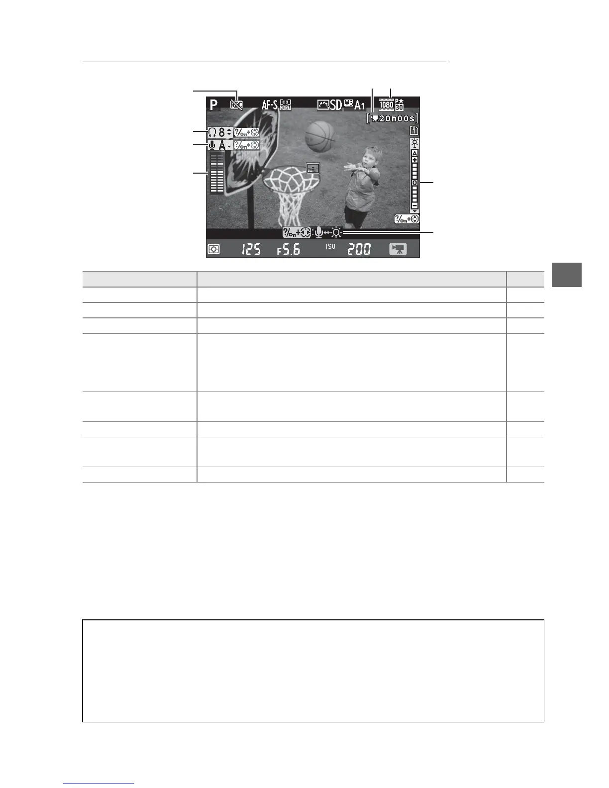 Guide A guide to the options available during movie live view. 62