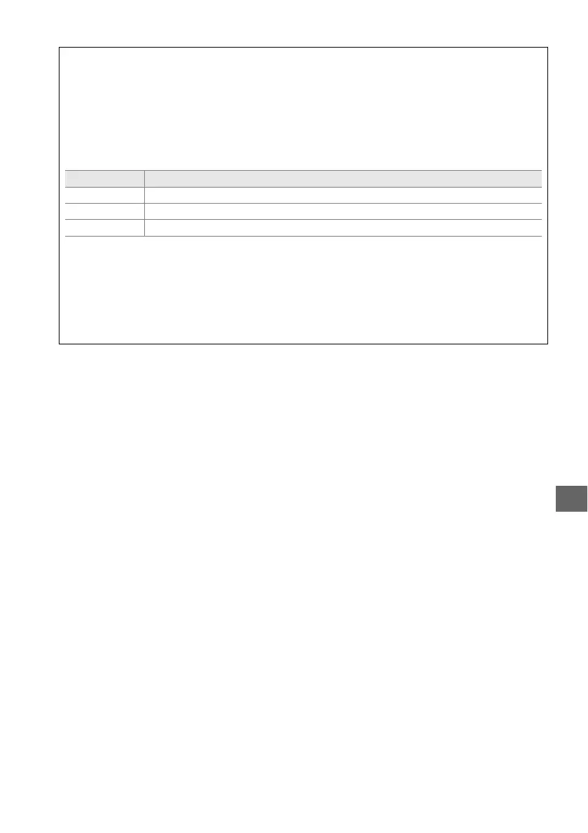 role of the A AE-L/AF-L button, see Custom Setting f4 (Assign AE-L/AF-L button, 0 244).