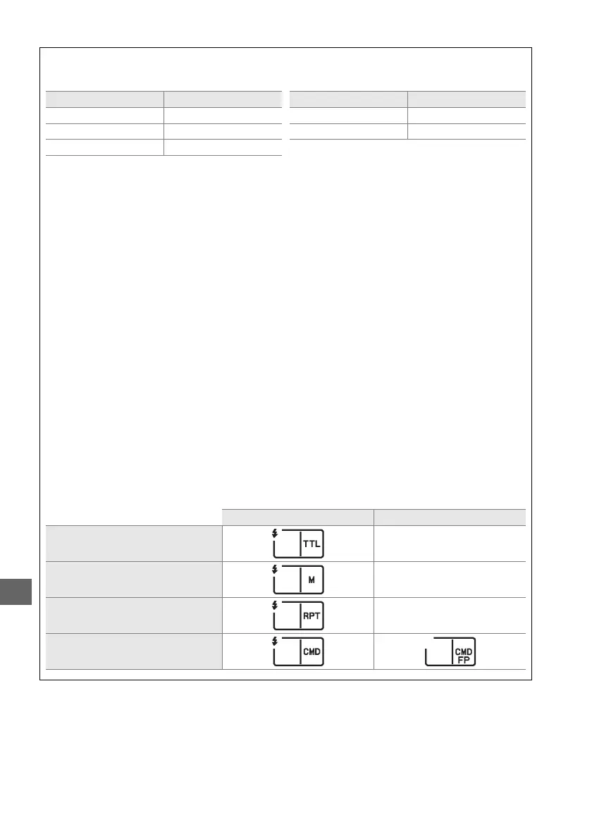 units when 1/250 s (Auto FP) or 1/200 s (Auto FP) is selected for Custom Setting e1 (Flash sync