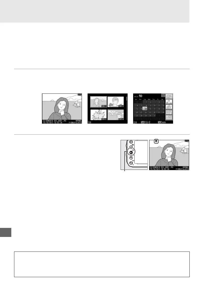 In full-frame, zoom, thumbnail, and calendar playback, the L (U) button can be