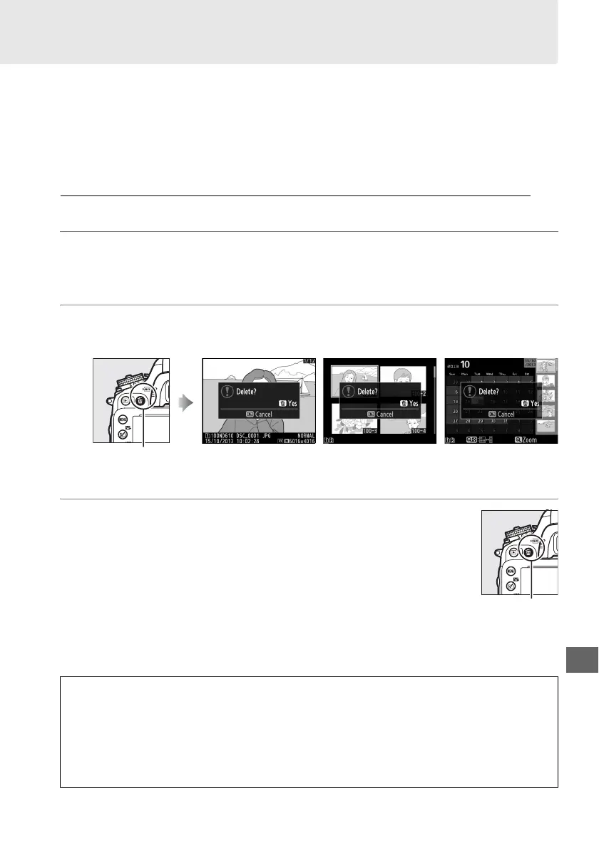 To delete the photograph displayed in full-frame playback or highlighted in the