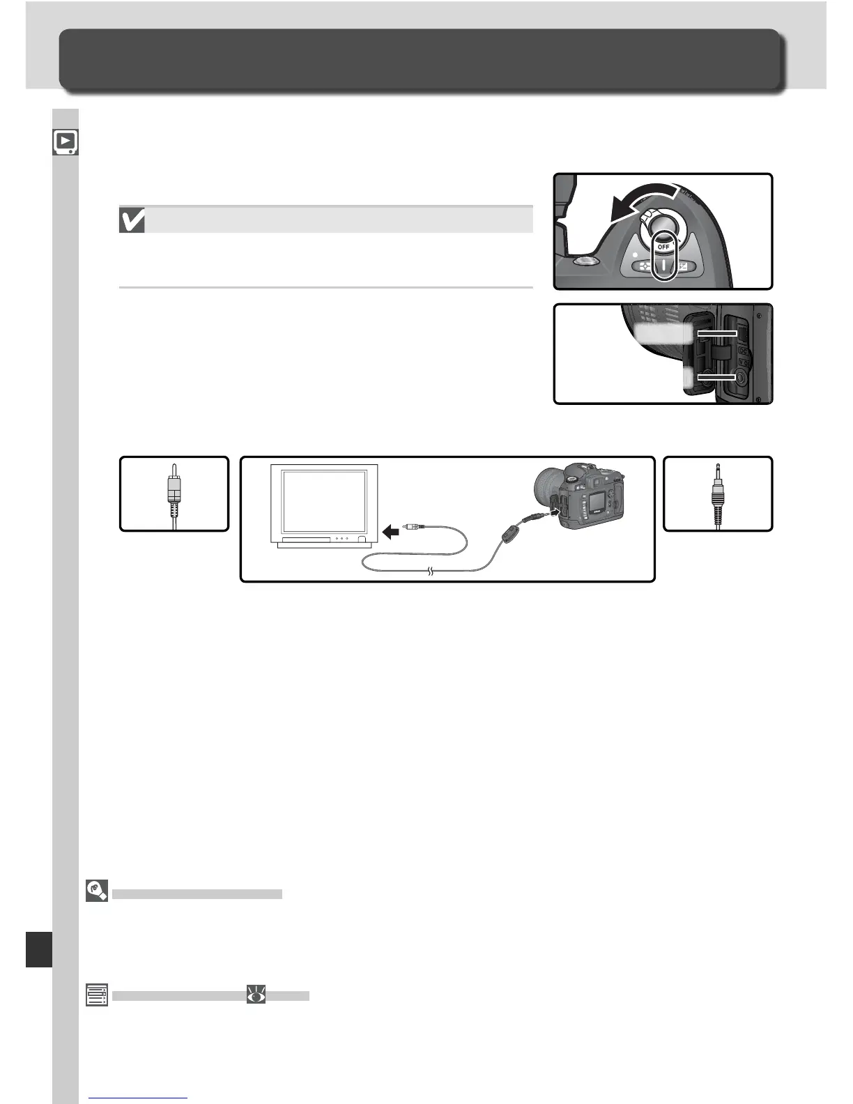 The supplied EG-D100 video cable can be used to connect the D70 to a tele-