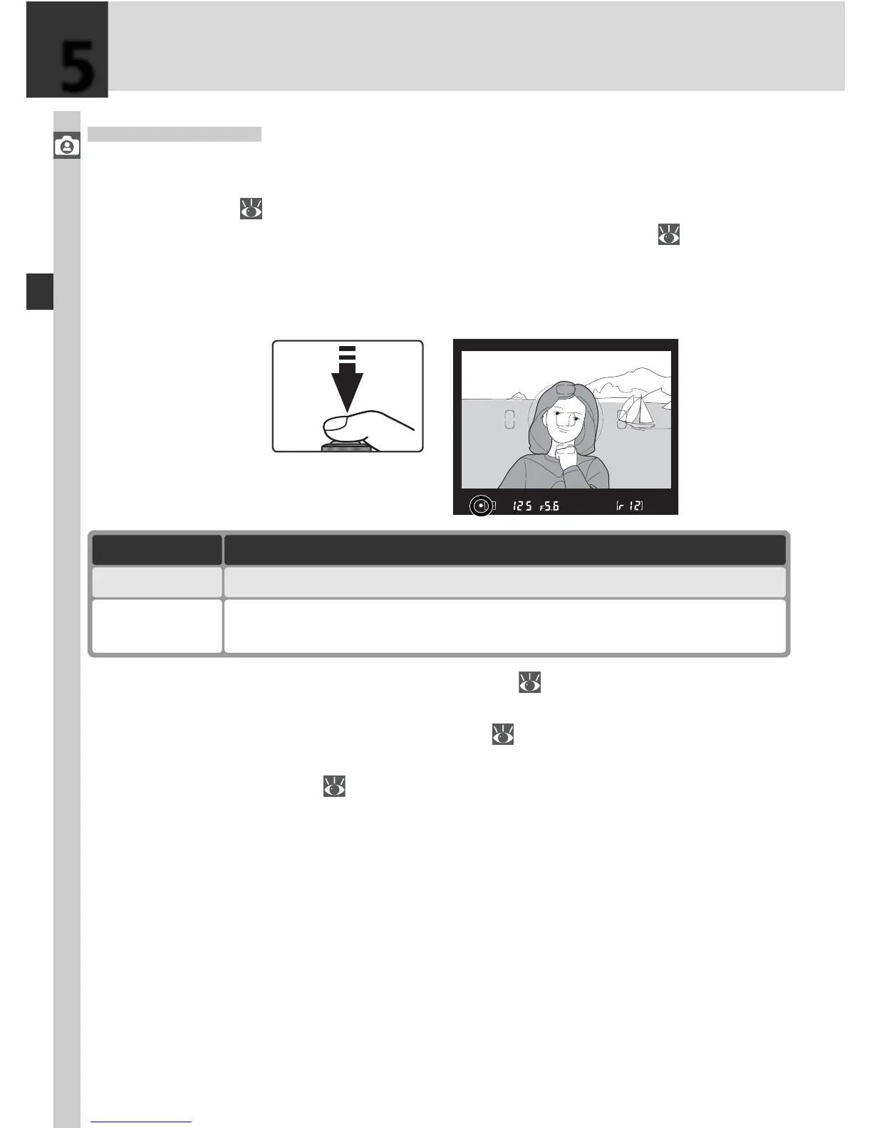 in-focus indicator (●) will appear in the viewfi nder (see table below). If the