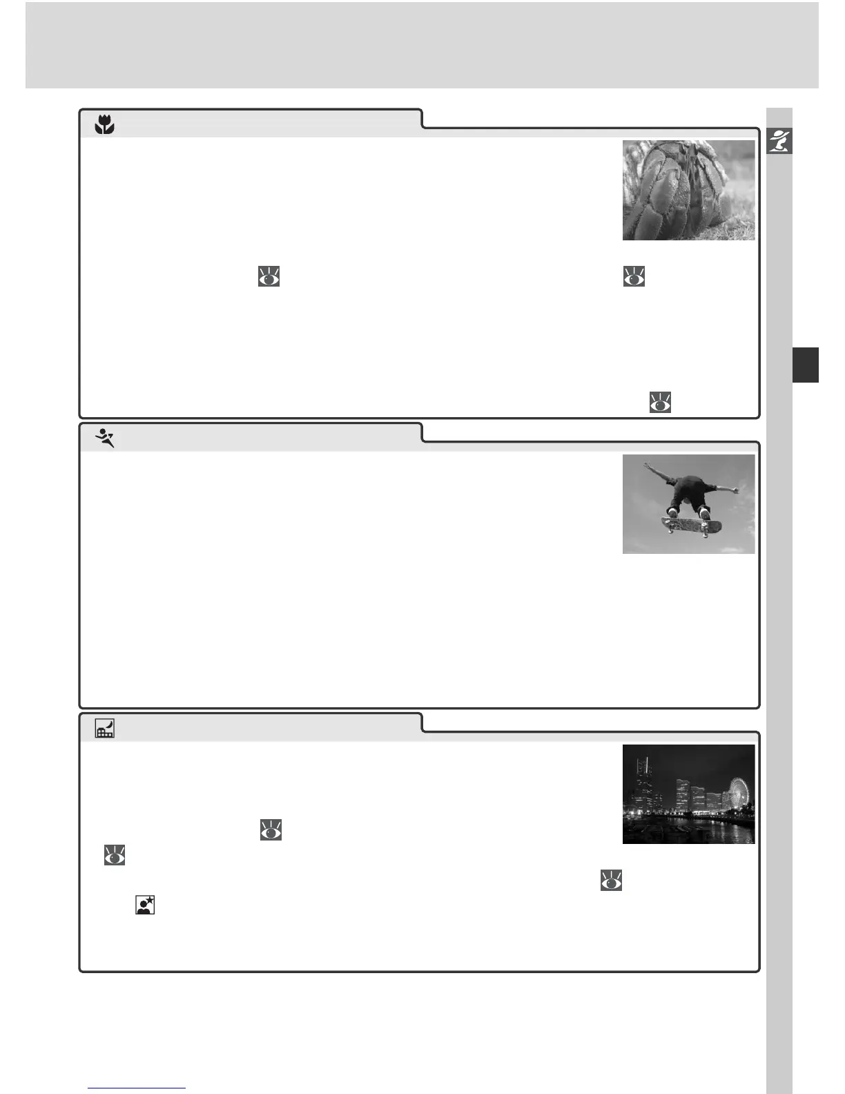 • Use telephoto lens for best results. Tripod recommended to prevent blur-