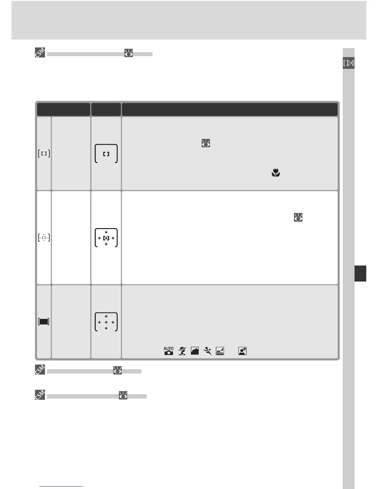 still fo cus ing. The current setting is indicated by the focus-area displays in the control