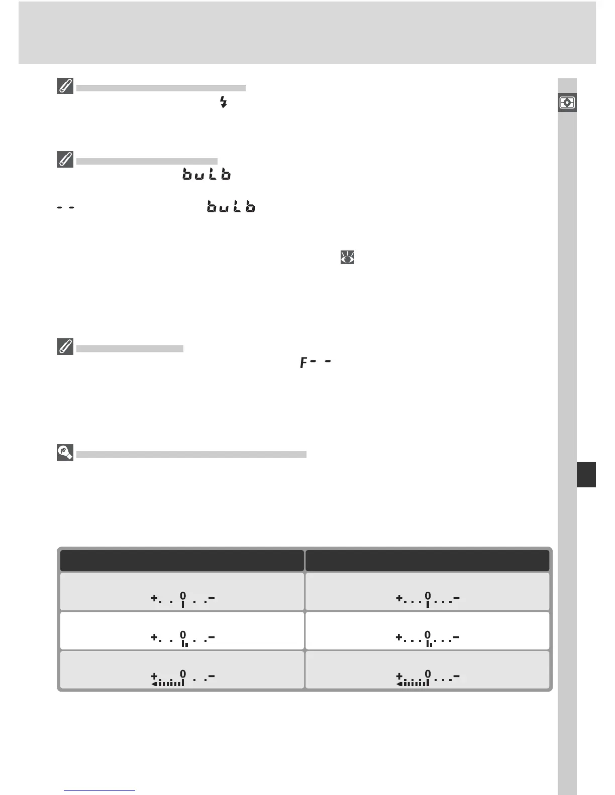 ditional lighting. The fl ash-ready indicator will not be displayed if Off is selected for