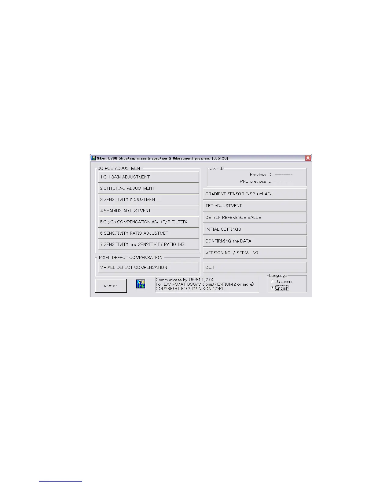 ment by the shooting image adjustment software for D700 (J65120).