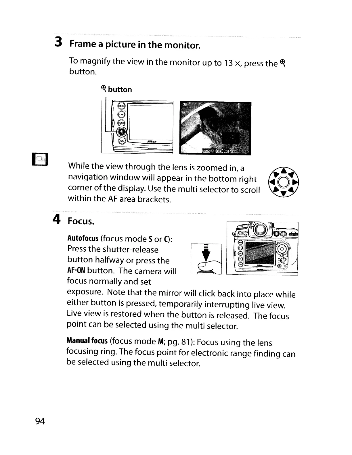 pressed, temporarily interrupting live view.