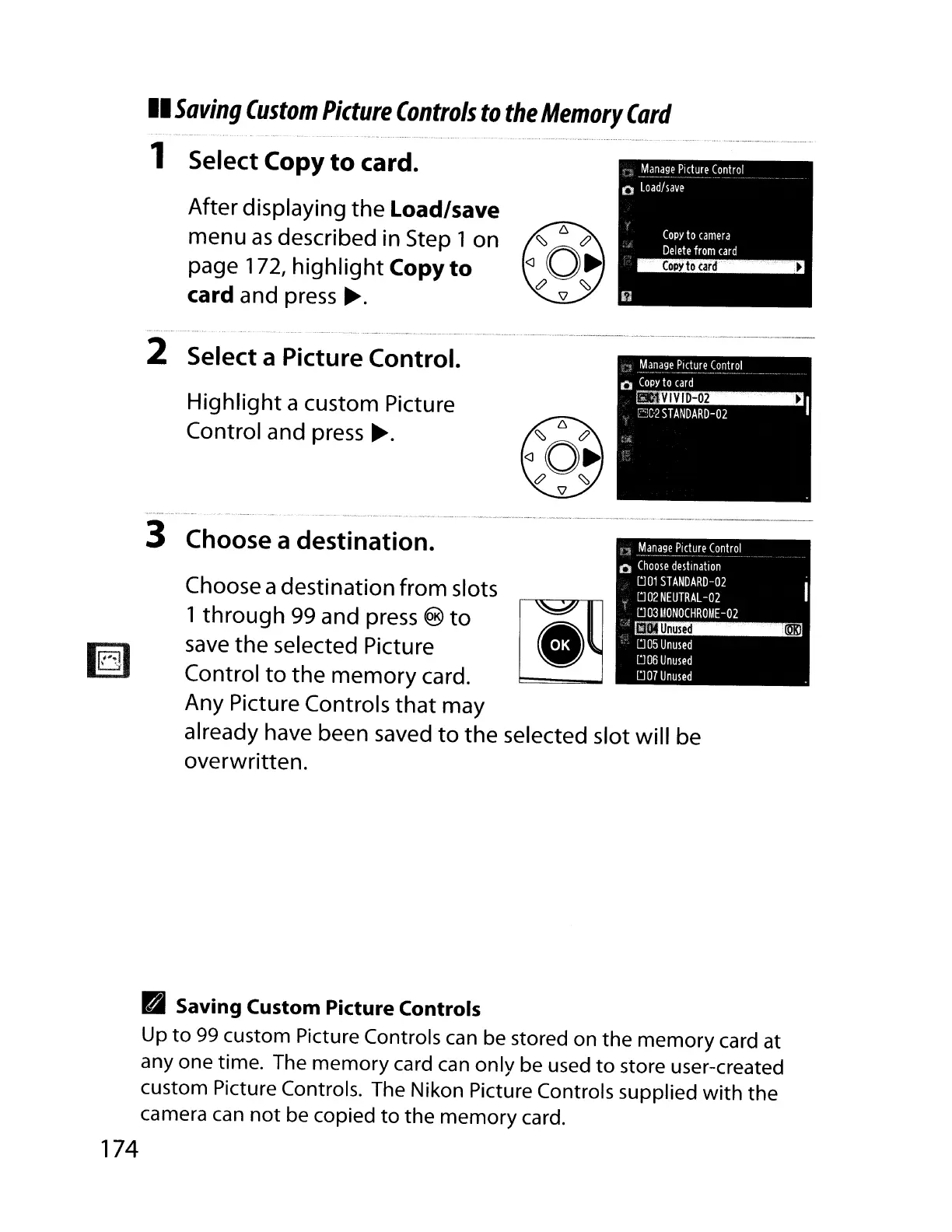 custom Picture Controls can be stored on the memory card at