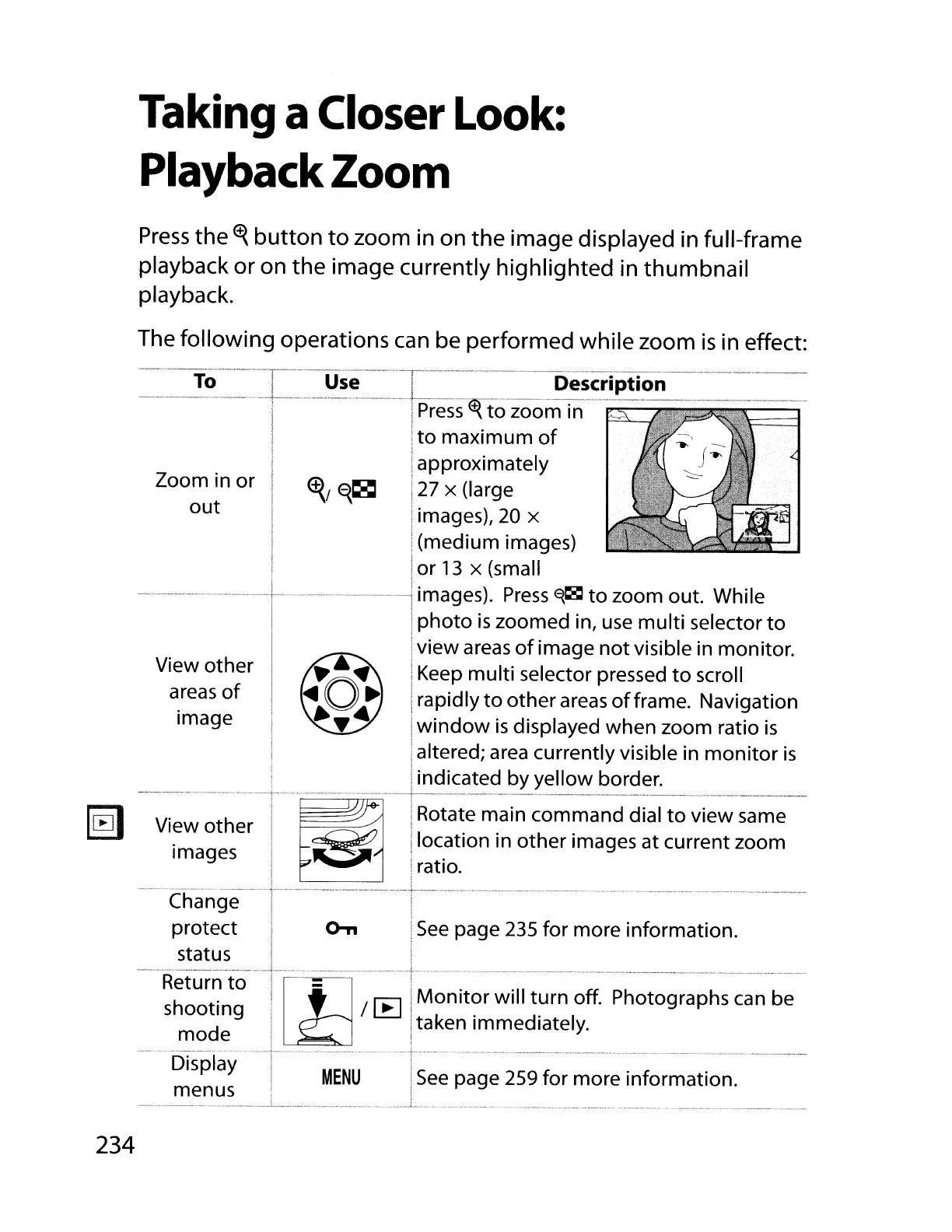 zoom in on the image displayed in full-frame
