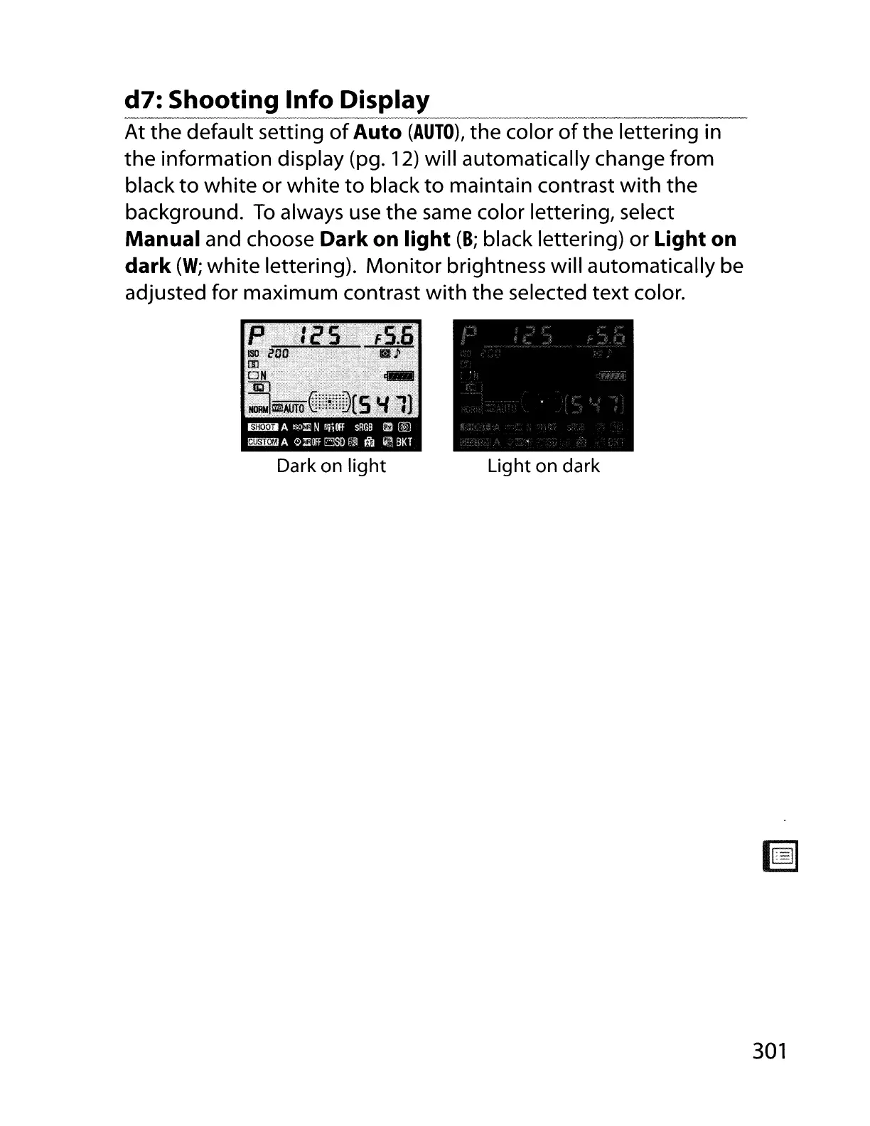 d7: Shooting Info Display