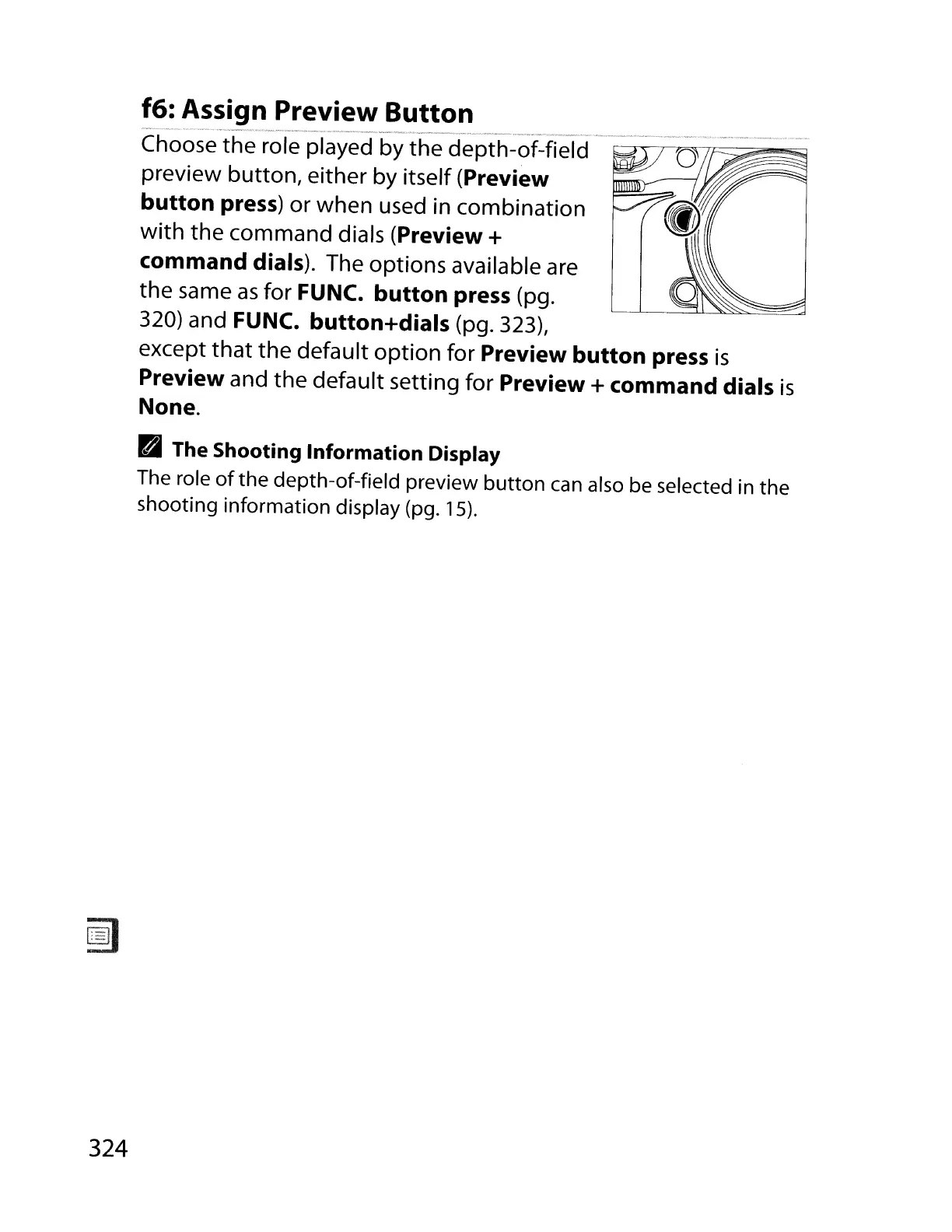 Preview and the default setting for Preview + command dials