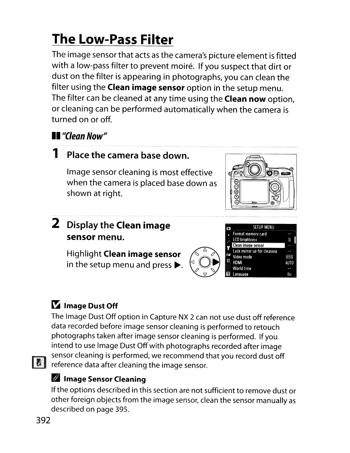 other foreign objects from the image sensor, clean the sensor manually