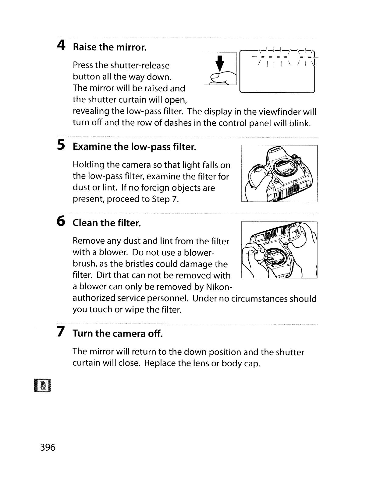 curtain will close. Replace the lens or body cap.