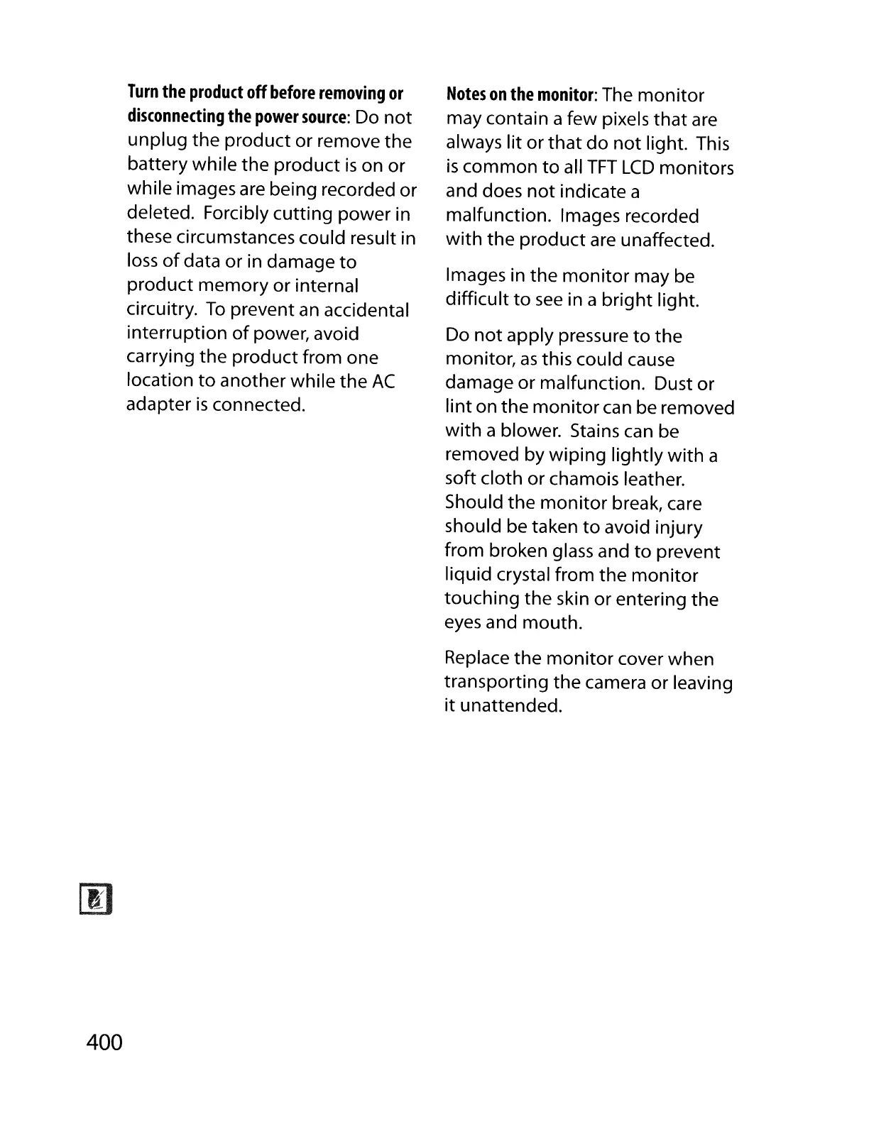 transporting the camera or leaving