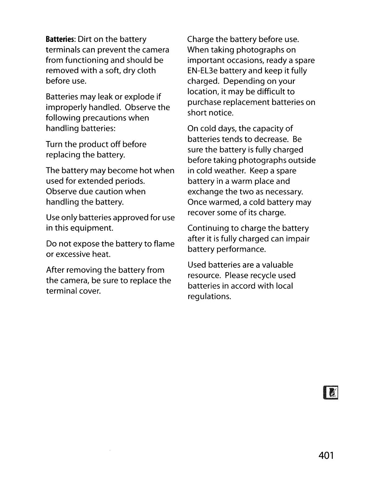 handling the battery.