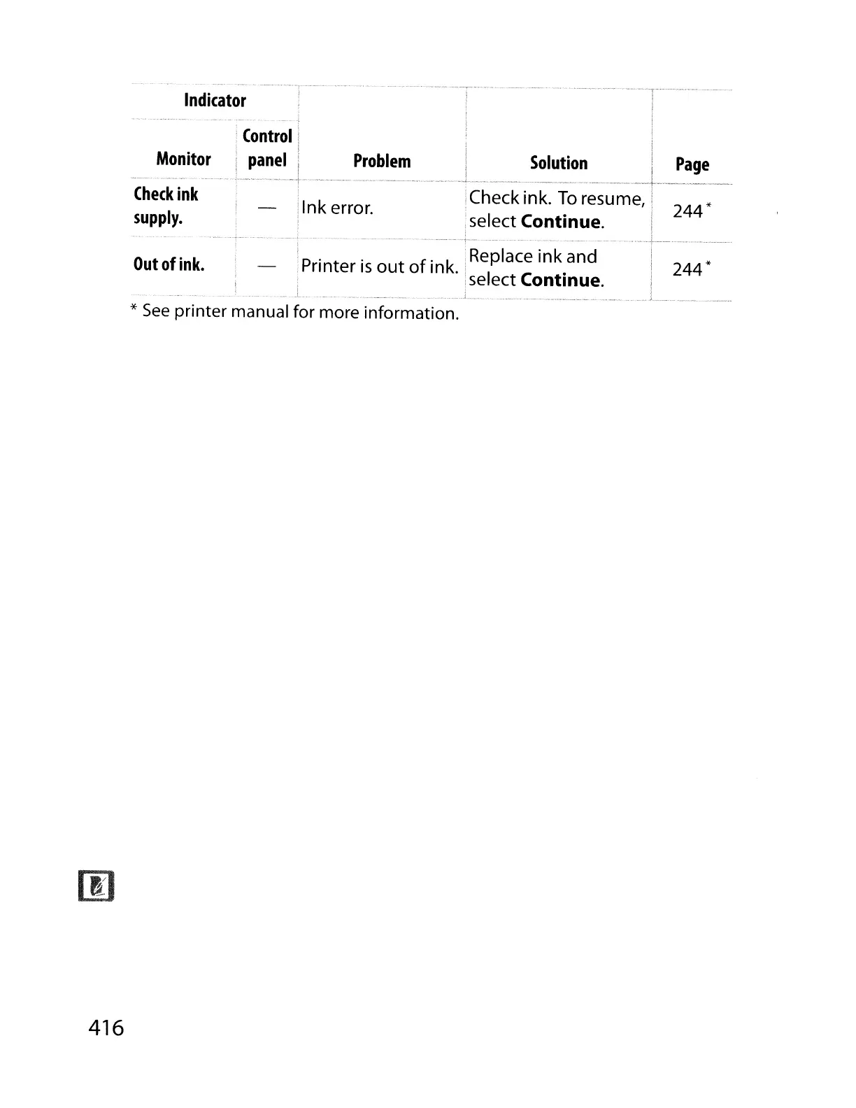 ink. Replace ink and