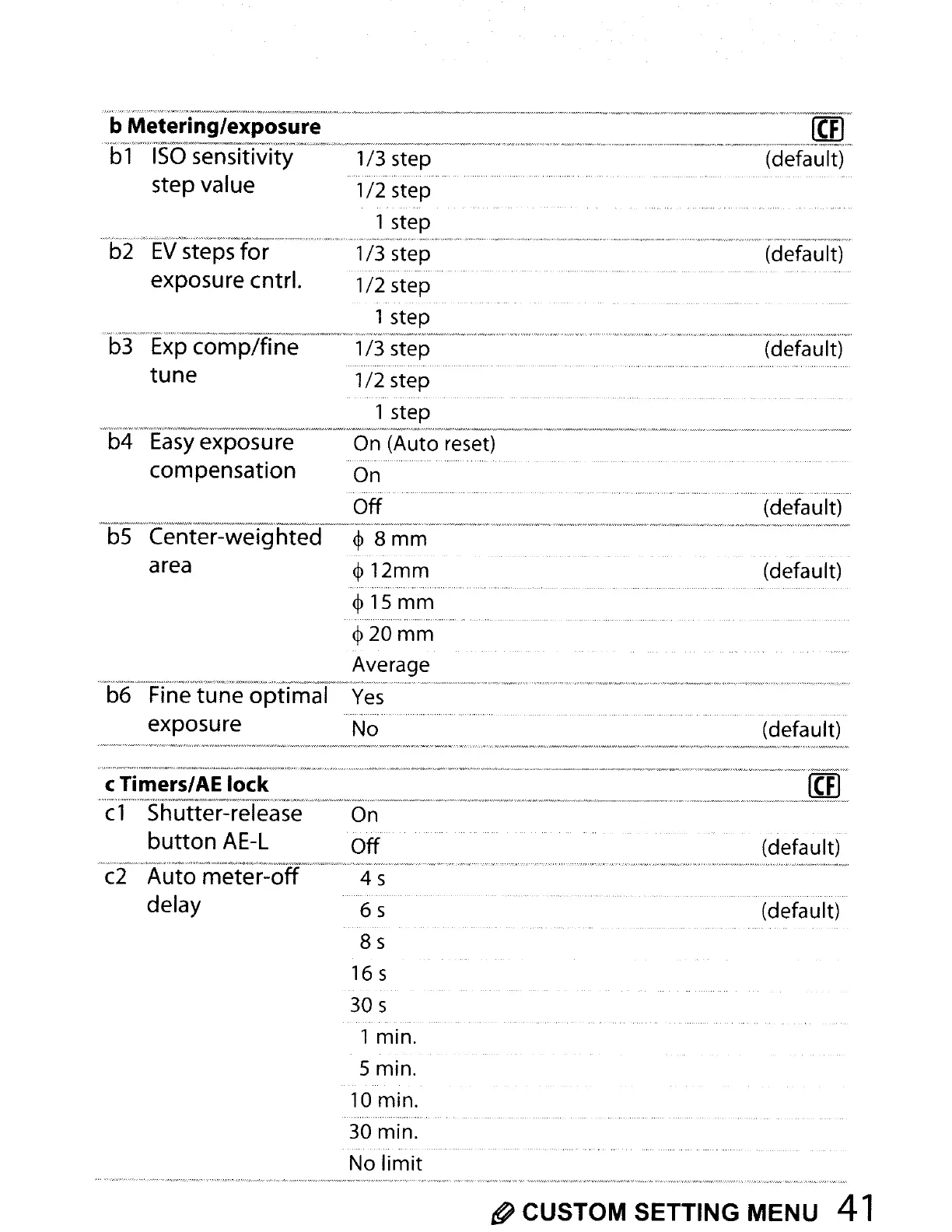 CUSTOM SETTING MENU
