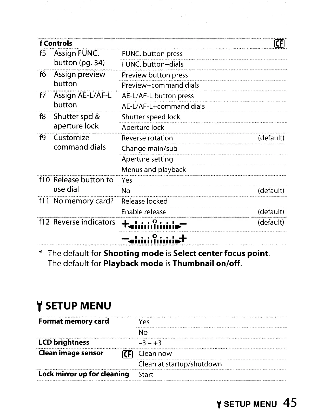 YSETUP MENU 45