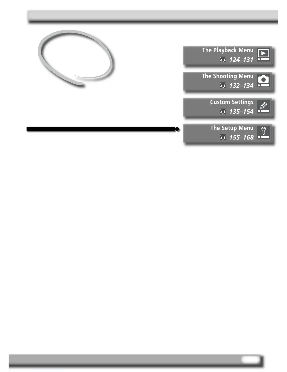This menu is used for basic camera setup, includ-