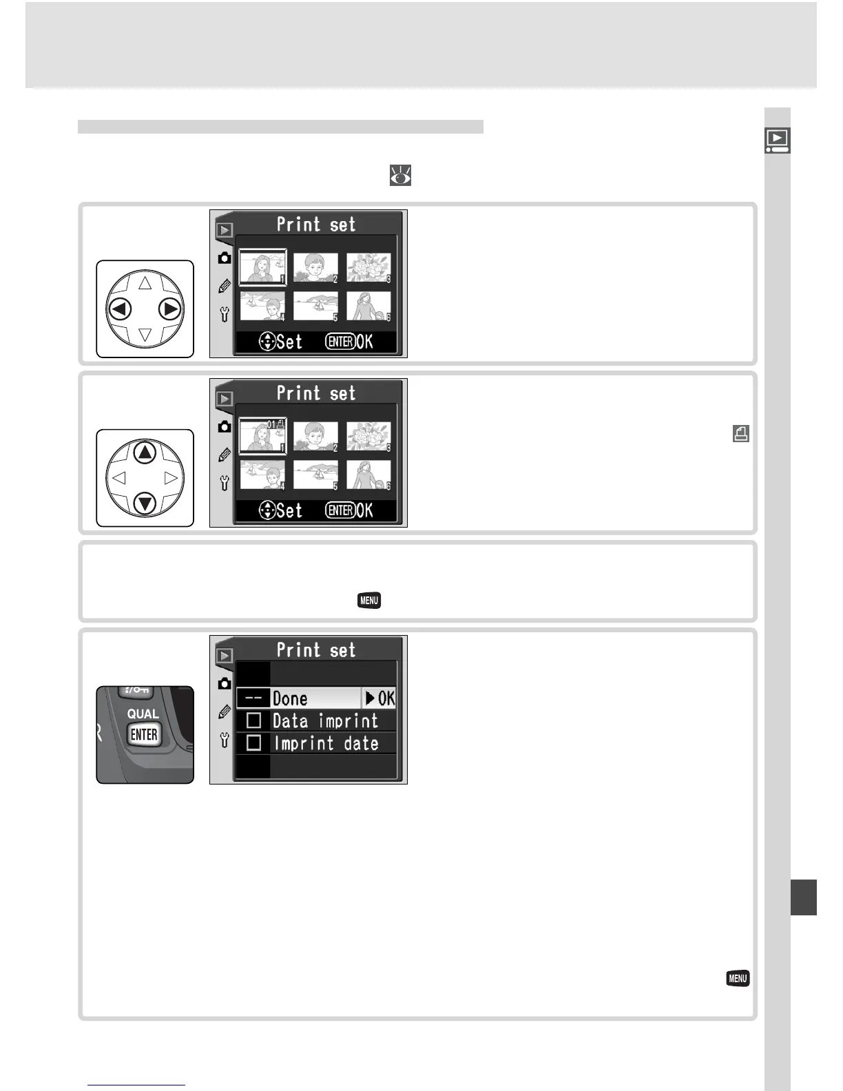 Data imprint and press multi selector to right. ✔ will appear next to item.