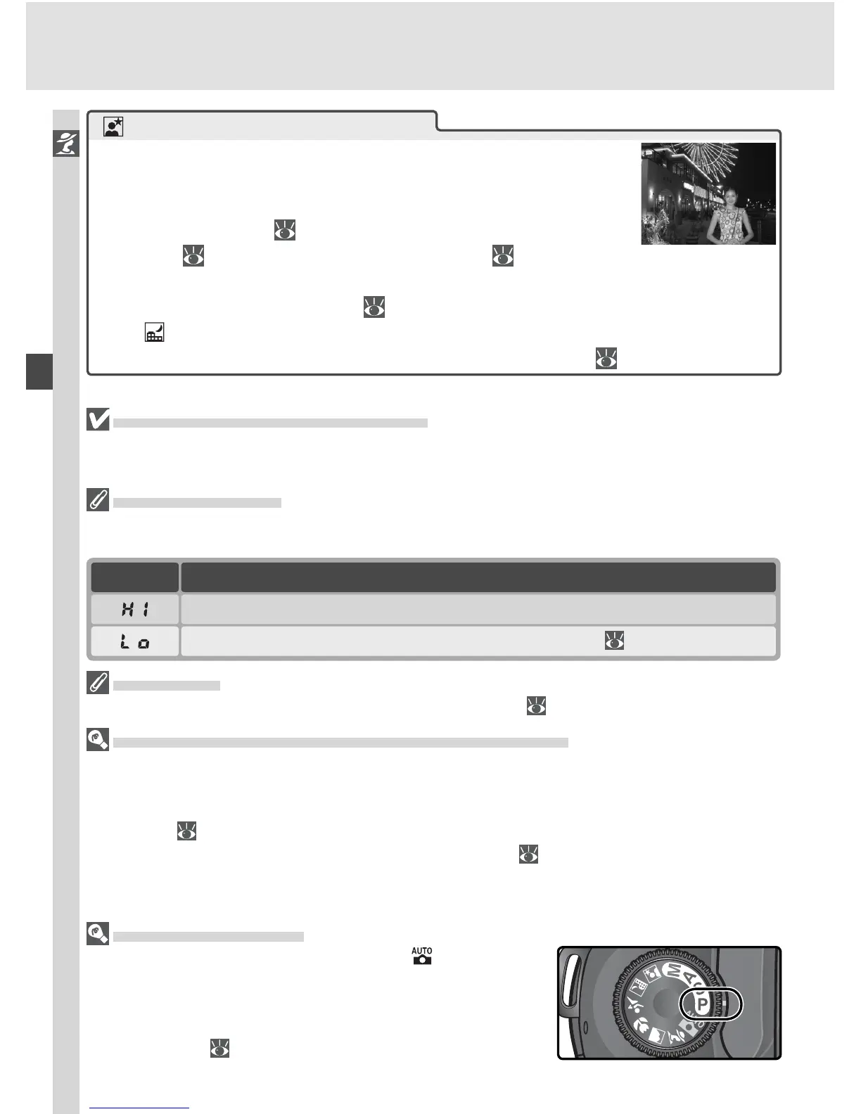 • Flash set to slow sync. Other modes can be selected ( 96).