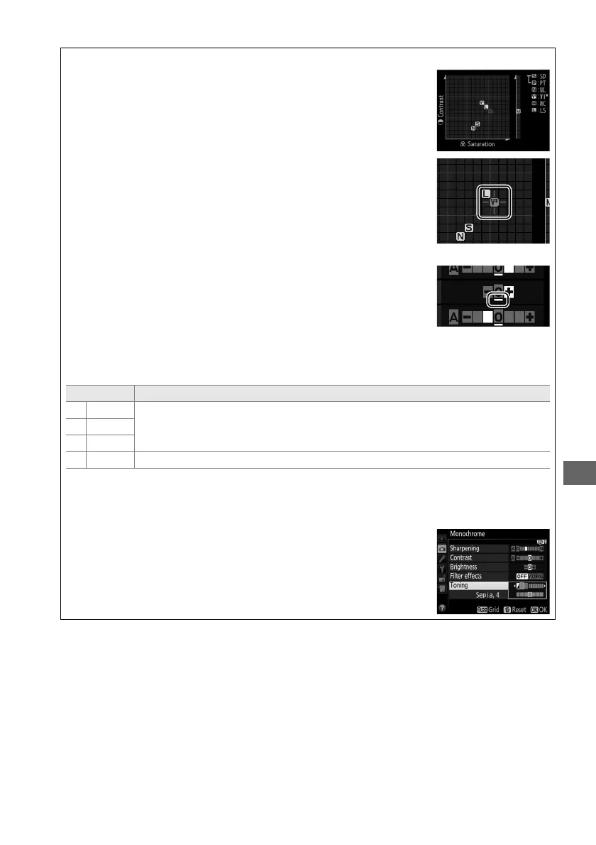 The icons for Picture Controls that use auto contrast and saturation