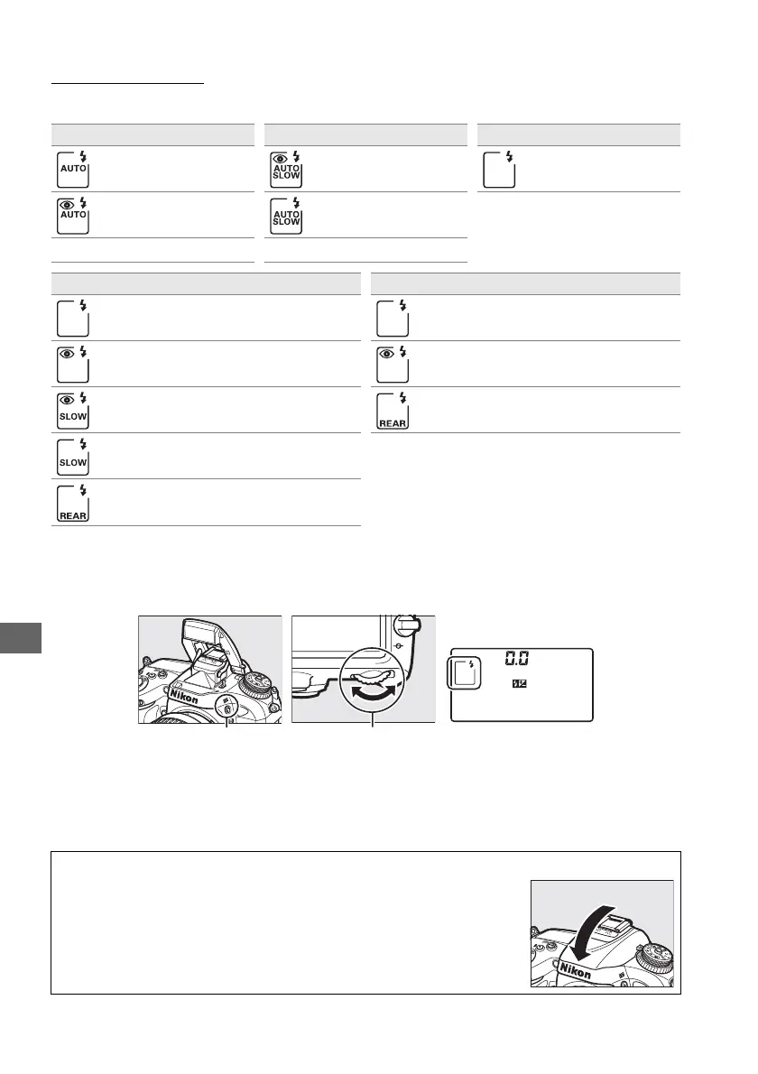 The flash modes available vary with shooting mode: