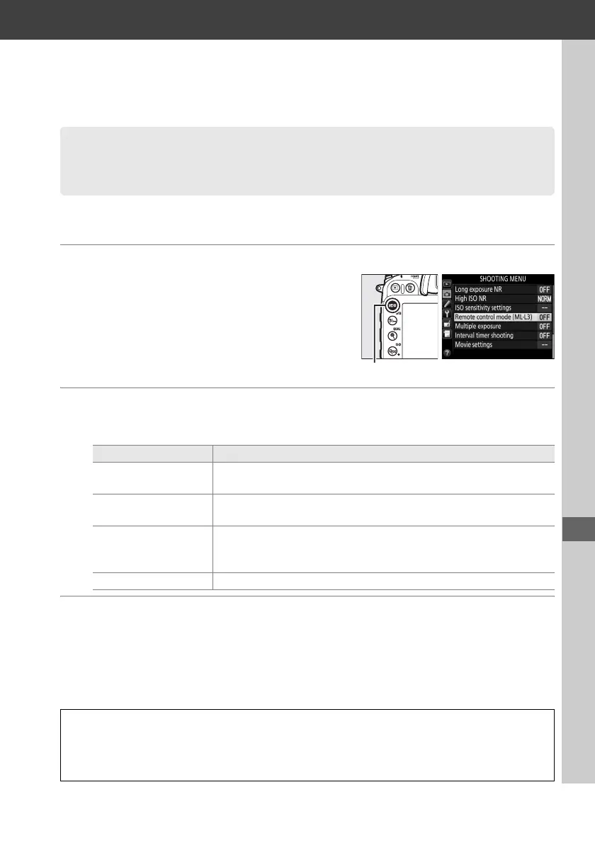 When an optional ML-L3 remote control is used, the release mode selected with the release