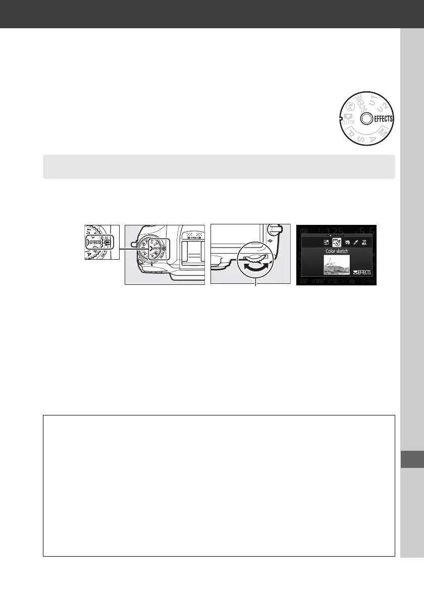 To view the currently selected special effect mode, rotate the mode dial to q and