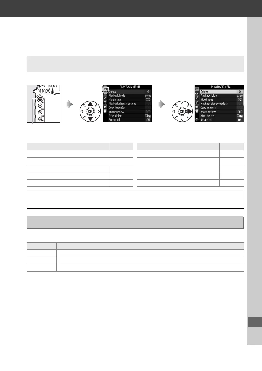 To display the playback menu, press G and select the D (playback menu) tab.