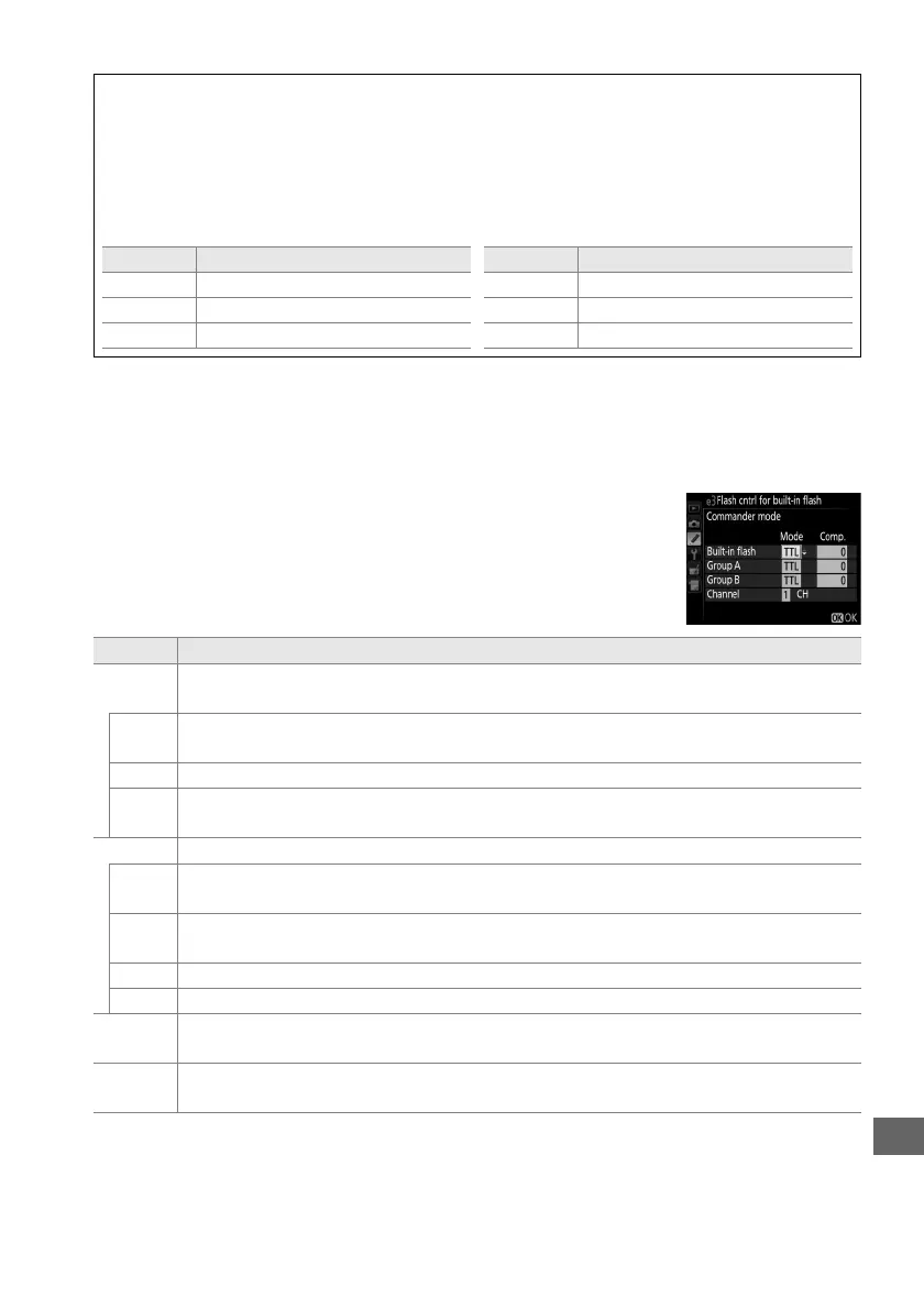 Choose a flash mode for the built-in flash (commander flash).