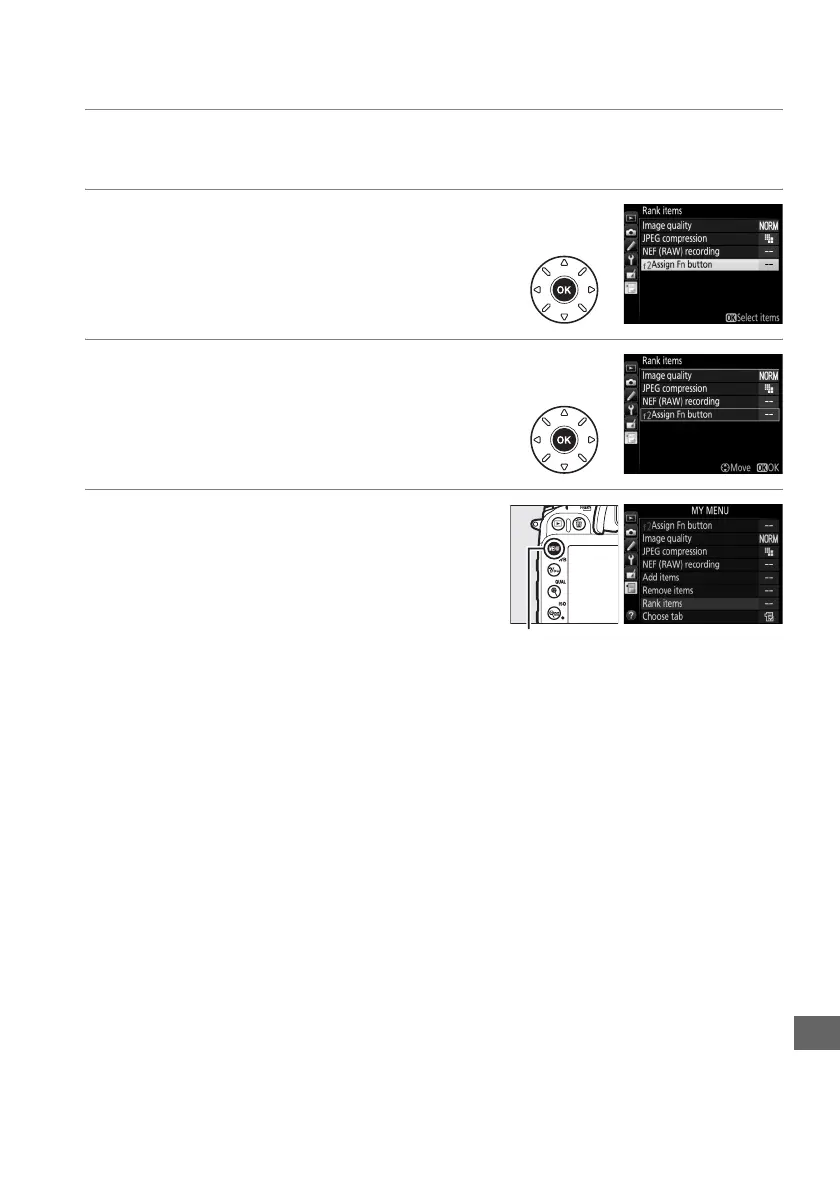 In My Menu (O), highlight Rank items and press 2.