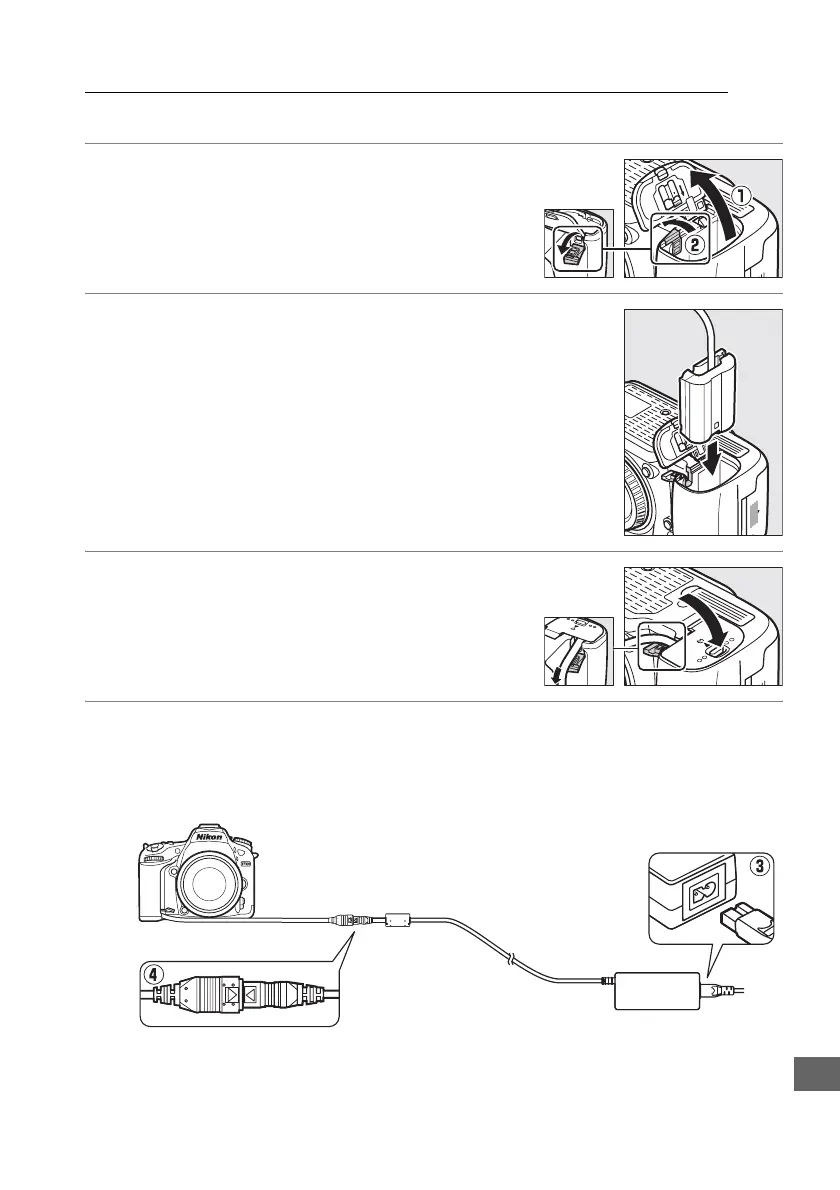 Turn the camera off before attaching an optional power connector and AC adapter.