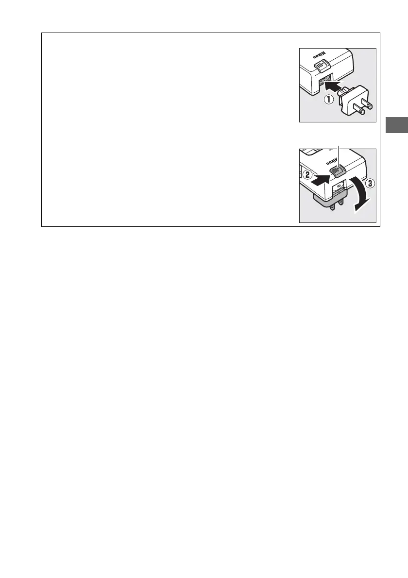 insert it into the charger AC inlet (q). Slide the AC wall adapter