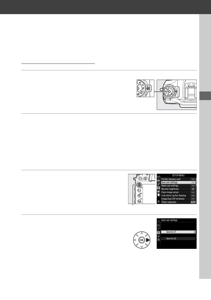 Assign frequently-used settings to the U1 and U2 positions on the mode dial.