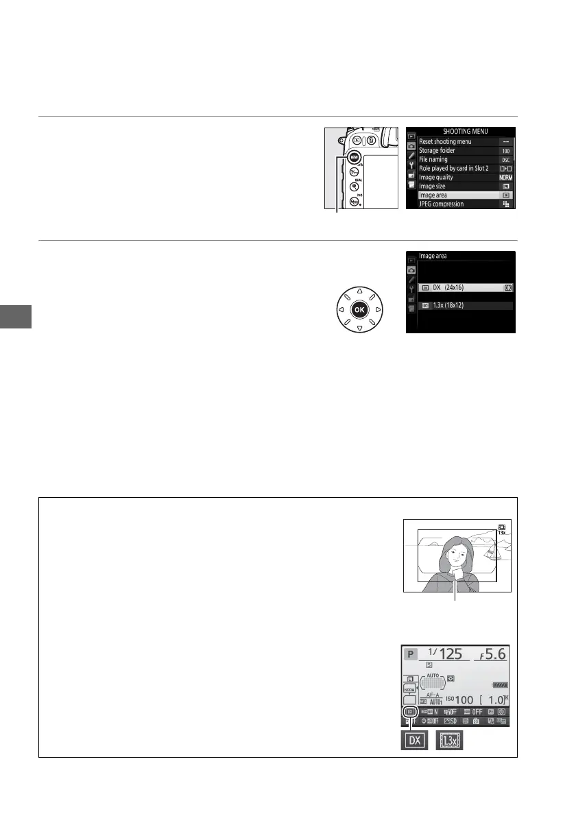 The viewfinder display for the 1.3× DX crop is shown at right.