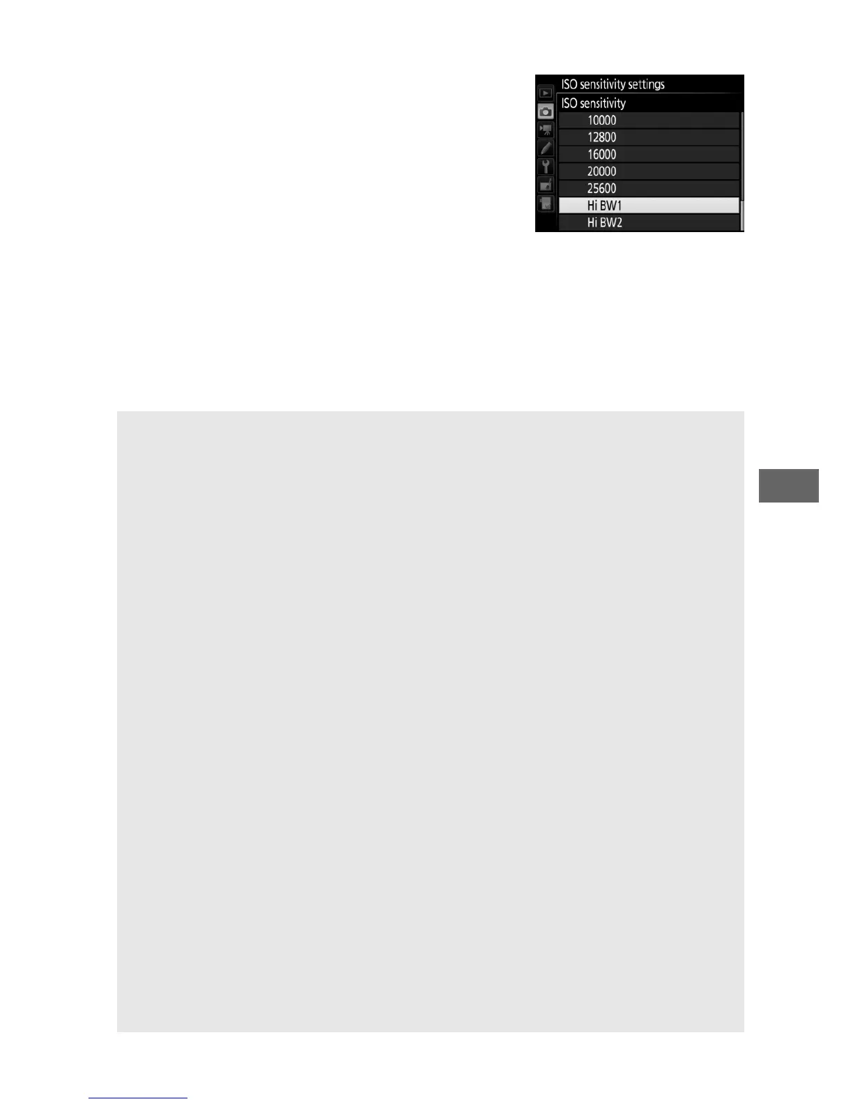 for Hi ISO command dial access while Hi BW1 or Hi BW2 is selected,