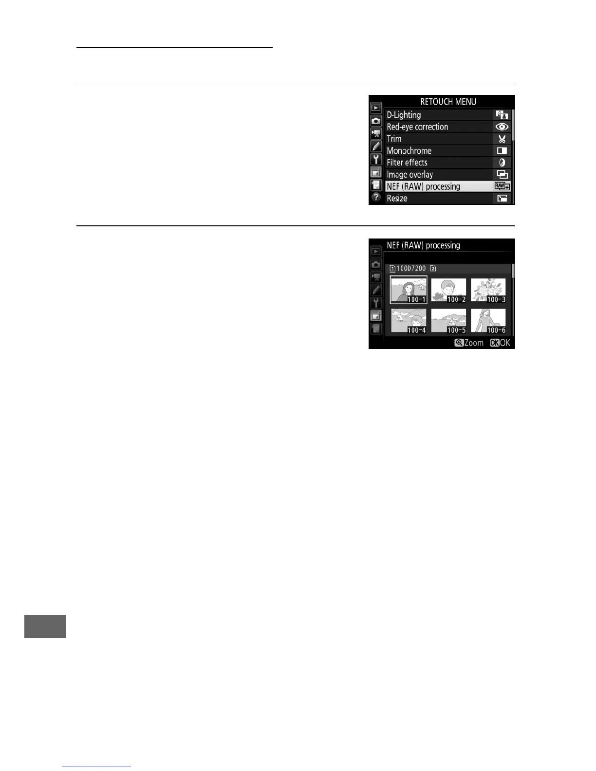 1 Select NEF (RAW) processing.