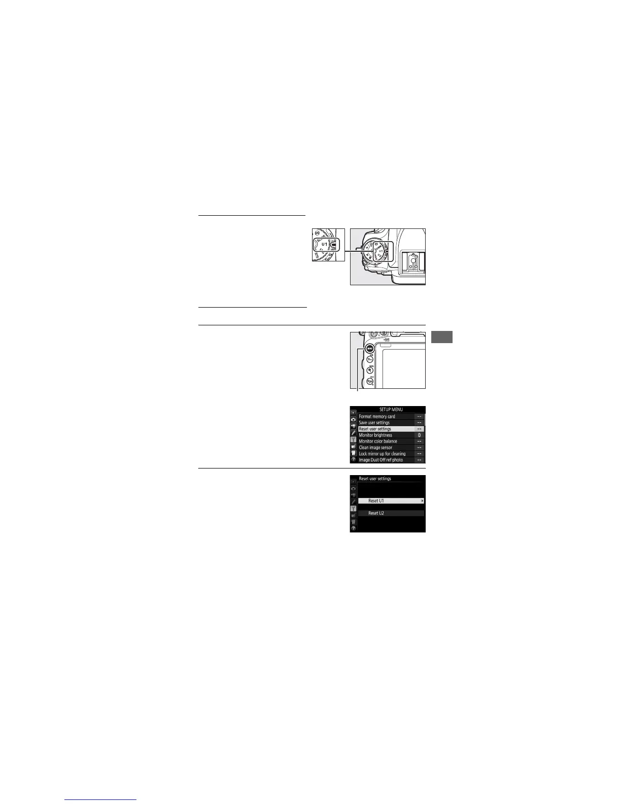 To reset settings for U1 or U2 to default values: