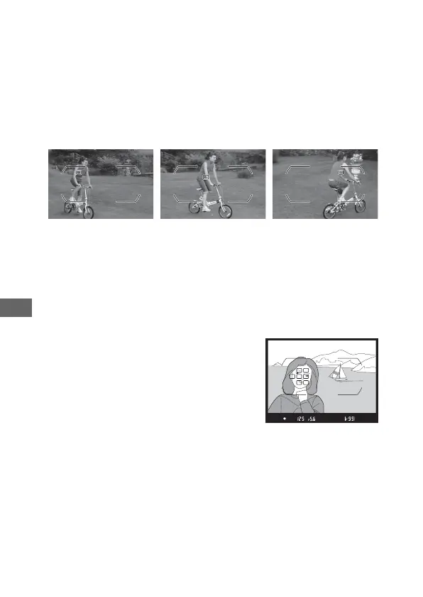 • 3D-tracking: Select the focus point. In AF-A and AF-C focus modes,