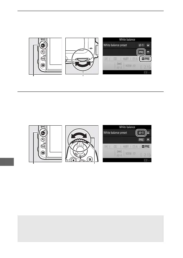 until the desired white balance preset (d-1 to d-6) is displayed