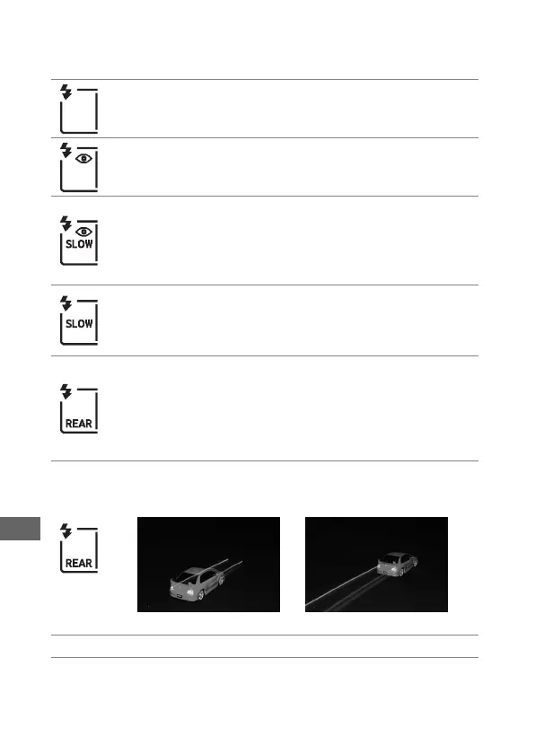Slow rear-curtain sync: As for “rear-curtain sync”, below, except