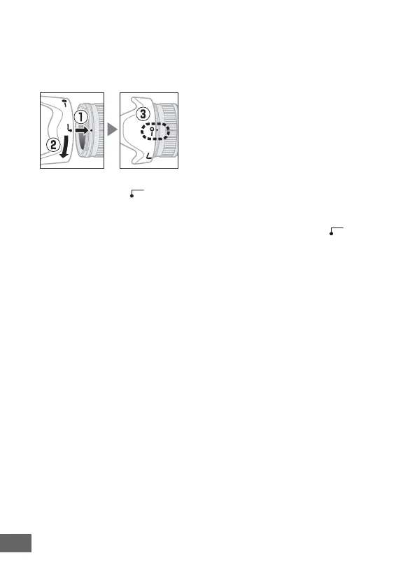alignment mark ( ) and then rotate the hood (w) until the ●