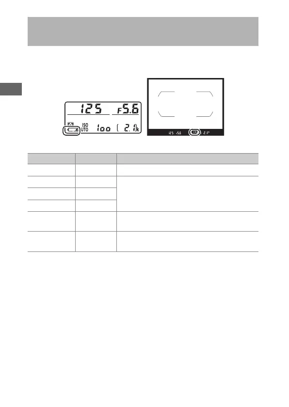 The battery level is shown in the control panel and viewfinder.