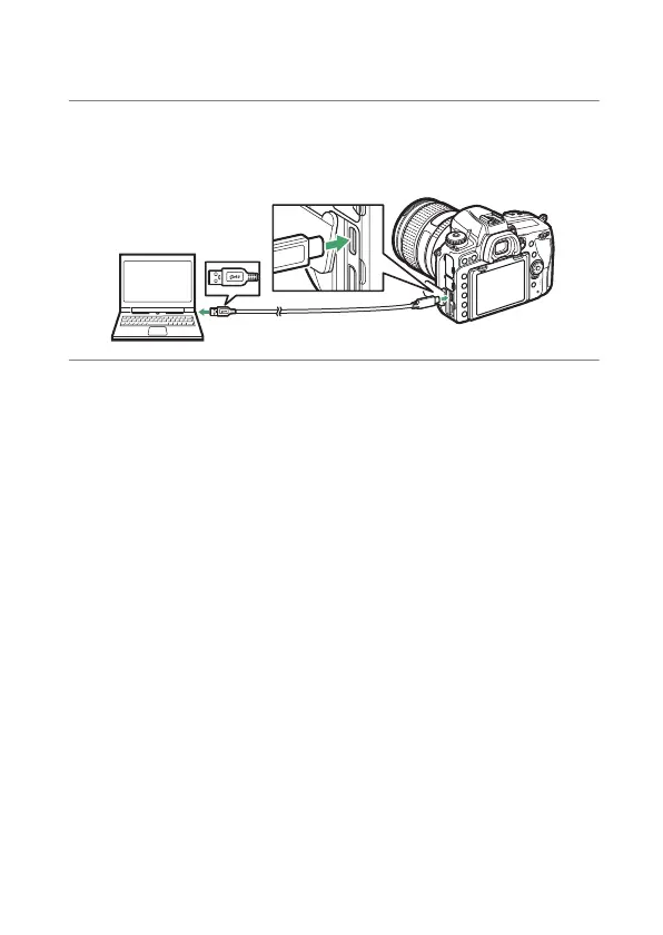 card is inserted, connect the supplied USB cable as shown.