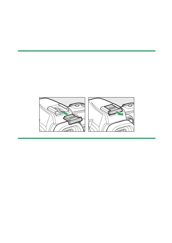 shoe as shown. To remove the cover, hold the camera firmly, press the